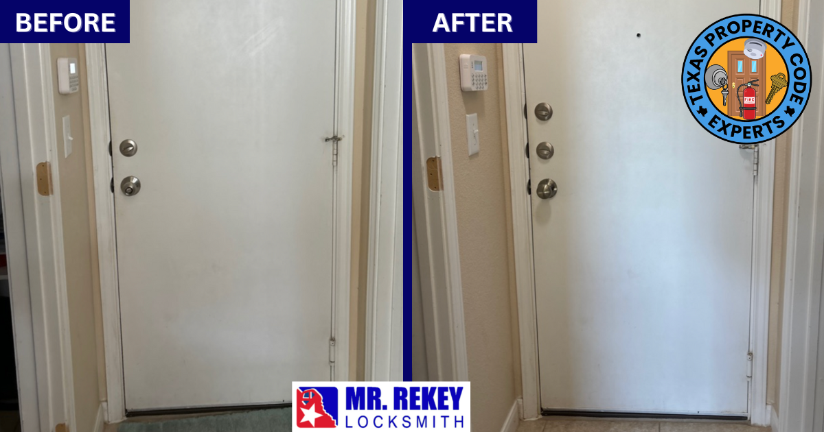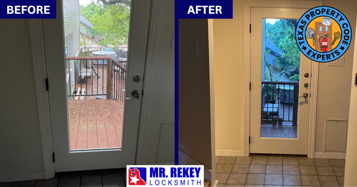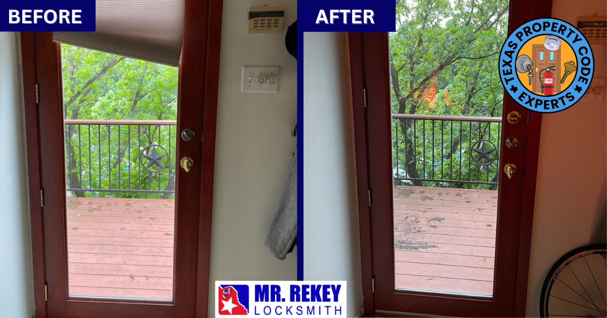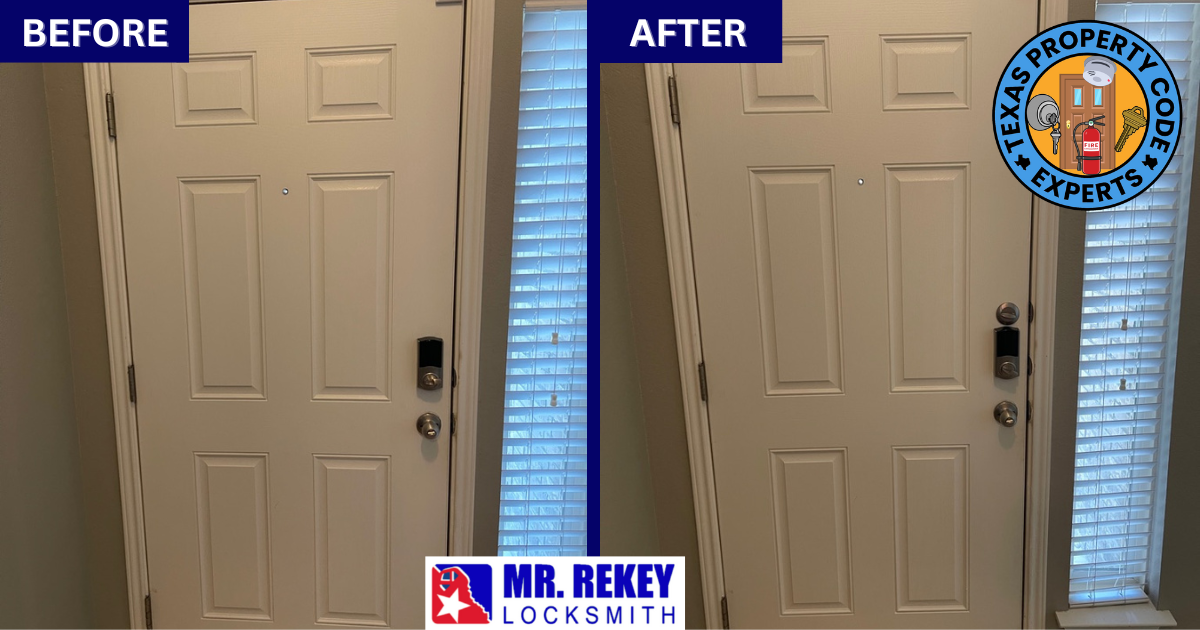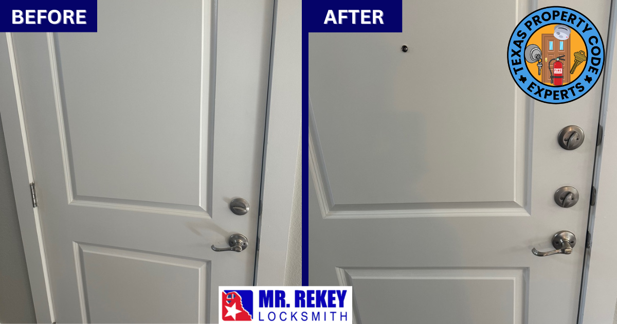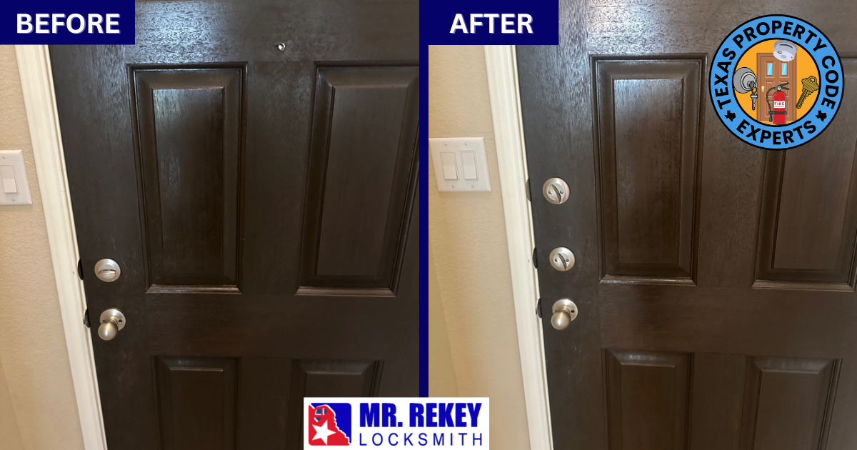 1. Mr. Rekey Locksmith is “THE EXPERT” on Texas Lock Laws 😎.No other company has brought more Texas rentals up to code than our company. For over almost 30 years, Mr. Rekey Locksmith has dealt with all types of residential doors; has brought up to code condos, single family homes, mobile homes, etc.